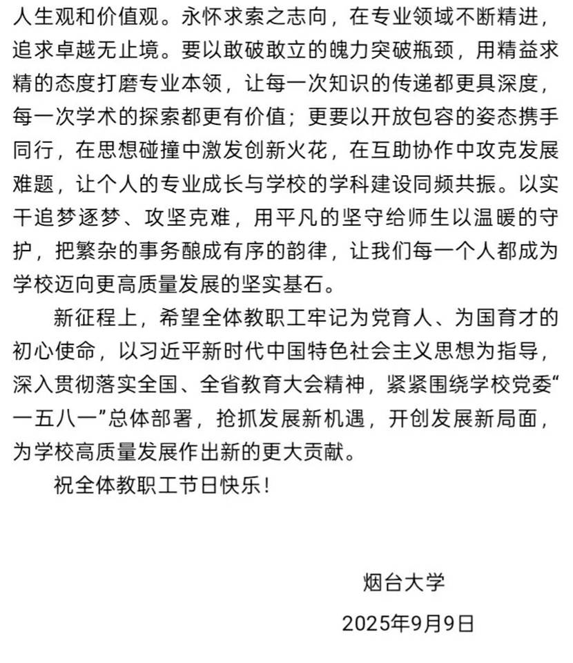 2025年教师节致全体教职工的一封信