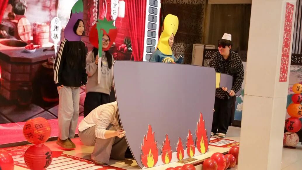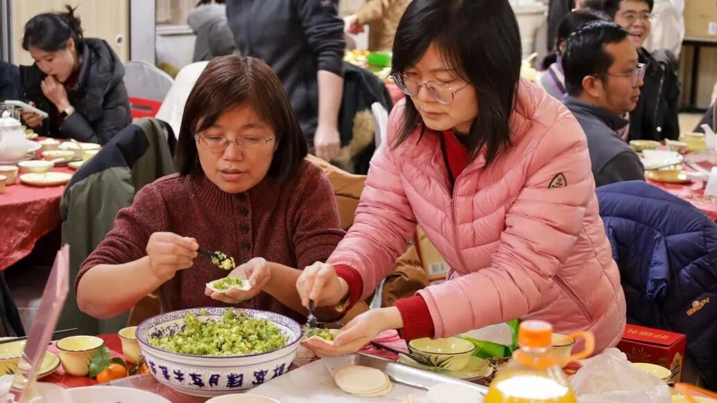 “包饺子比赛”最是温馨,老师们围坐桌前,揉面、擀皮、包馅动作娴熟,指尖翻飞间,一个个形态各异的饺子渐次成型,热气未起却已暖意满盈,新春的烟火气与幸福感填满整个大厅。