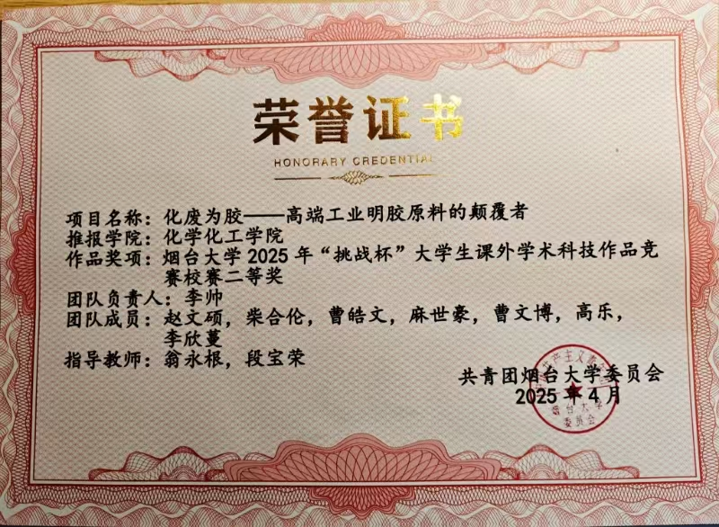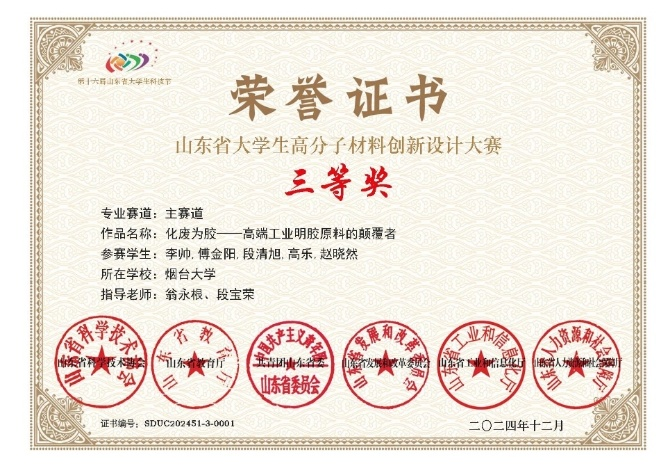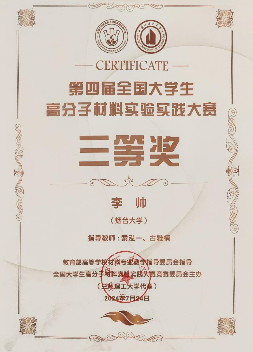 在团队协作与课题研究上,李帅有着清晰的理念与准则,她秉持“能力互补、志趣相投”的团队理念,带领的团队成员彼此信任、各有所长,且始终坚信“攻关的秘诀,就是把大问题拆解成一个个小任务”,遇到困难时团队成员共同“头脑风暴”、逐个击破;同时在研究方向的选择上,她恪守“兴趣导向、导师专长、社会需求”的法则,从自身兴趣出发,积极对接导师的研究前沿,主动响应“双碳”等国家重大战略,让研究更具现实意义。谈及未来,她表示会继续以提前规划的方式夯实高分子材料专业基础,认真做好本职工作。科研领域里,她将紧扣“双碳”目标,结合导师专长与自身兴趣,和团队拆解课题难题、攻坚实验研究,还会通过听讲座、联导师、进项目组提升素养,努力在高分子材料科研与应用领域做出更多实绩。