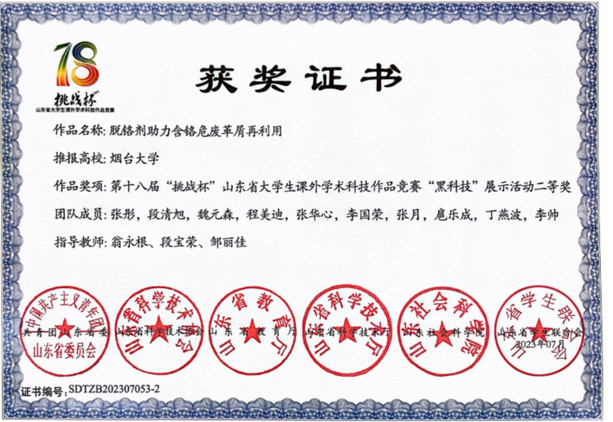 李帅,共青团员,化学化工学院高222-1班学生。在学习方面,她连续三年裸分和综测成绩均位于专业前列,曾获“馨德奖学金”“汉高奖学金”、烟台大学“优秀学生奖学金”;在学生工作方面,她现任班级心理委员;在科研竞赛方面,她积极参与各项科创竞赛,曾取得多个国家级奖项以及省级奖项、发表会议论文2篇。