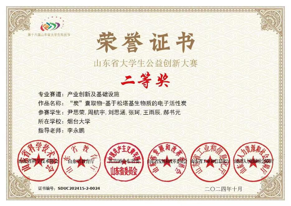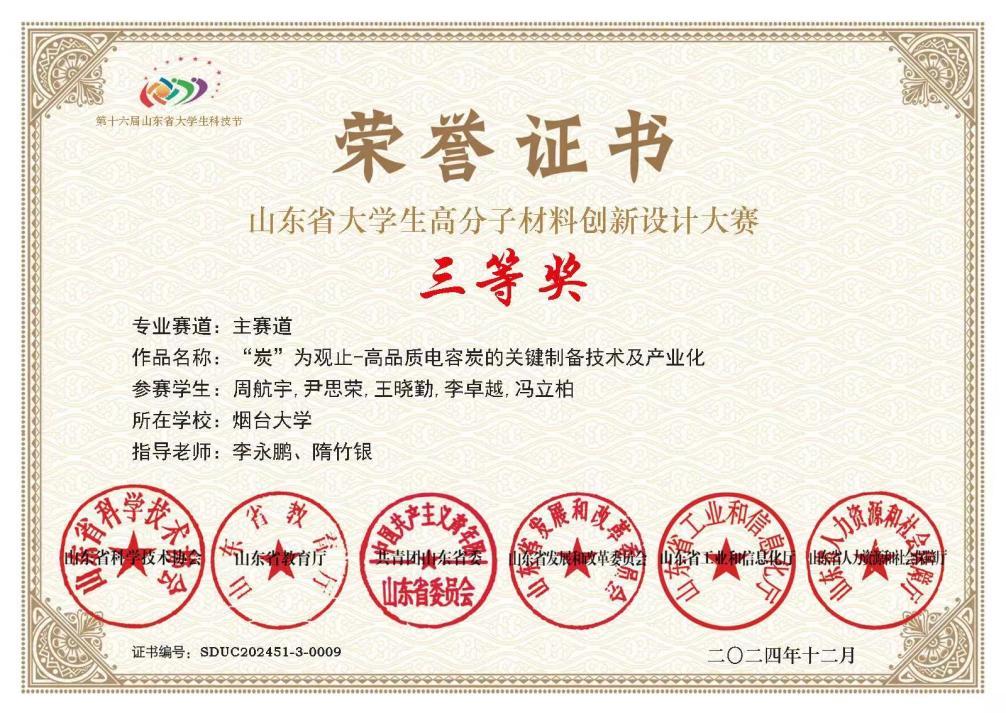 周航宇,烟台大学化学化工学院2022级应用化学专业本科生、中共党员。学习上,三学年综测成绩均居专业第一,获1项国家级、6项省级奖励,获评烟台大学2025年“十大优秀学生”;学生工作中,他任职班长成效显著,班级获“先进班集体”等称号,个人多次获评优秀学生干部、优秀共青团员;科研上,他深耕非共价相互作用研究,以第一作者发表多篇高水平论文,获国家专利授权;实践竞赛中,他斩获伊顿能源转型青年创新竞赛全国铜奖、山东省公益创新大赛省级银奖等多项国省级奖项,积极参与“三下乡”等志愿服务,是综合素质全面的优秀化院学子,同时已被中国科学院大学化学科学学院研究生拟录取。