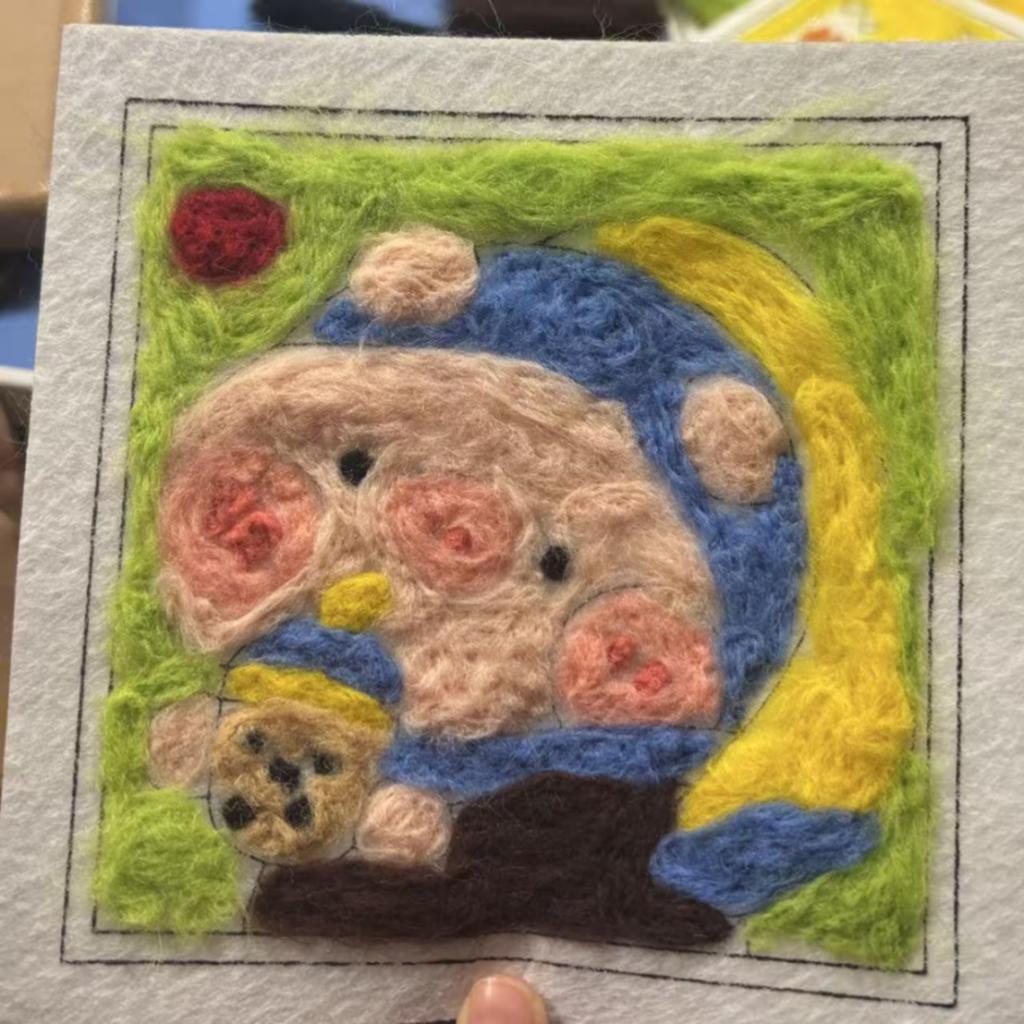 本次“悦心戳一戳”活动是一项充满创意与治愈感的手作体验,无需针线的简单操作,便能让线稿图案逐步变成立体的毛绒作品。同学们沉浸在创作时光里,在一次次轻戳慢捻间,让一个个可爱的形象化作独属于自己的毛绒艺术品;不少同学还充分发挥巧思,为作品搭配出独一无二的色彩风格,让手作的乐趣与创作的美好尽情绽放。