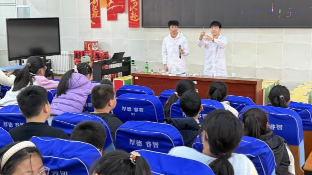2026年4月2日,烟台大学化学化工学院志愿服务部走进八角中心小学,开展“欢乐化学行”化学科普实验活动,用奇妙的化学现象为孩子们打开科学世界的大门,让课堂充满惊喜与活力。