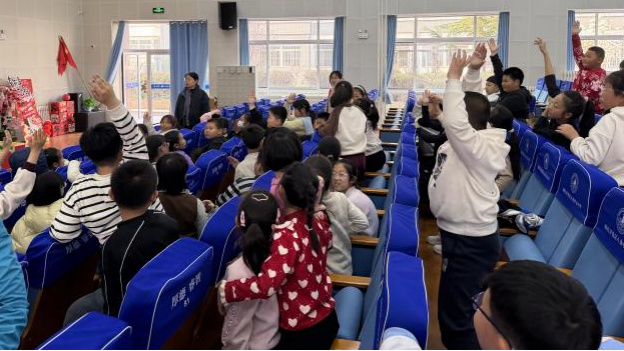 从淀粉遇上碘伏,瞬间变幻出深邃梦幻的蓝色,到紫甘蓝汁液在酸碱作用下,依次展现出红、粉、蓝、紫等多彩渐变,仿佛给童年调出了一整盒魔法颜料。每一次出乎意料的色彩转变,都让小朋友们惊喜不已,现场不时响起阵阵惊叹与欢快的笑声。面对志愿者的提问,小朋友们积极性高涨,纷纷高高举起小手,争先恐后地回答问题,稚嫩的声音里满是对知识的渴望,课堂互动氛围热烈而浓厚。